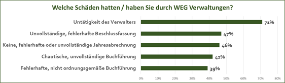 Eine schlechte Verwaltung verursacht zusätzlichen Ärger und Kosten. Oftmals werden Handwerkerleistungen nicht richtig kontrolliert oder es verstreichen Gewährleistungsfristen ungenutzt. Notwendige Modernisierungs- oder Renovierungsarbeiten werden nicht angegangen, die Erreichbarkeit der Verwaltung ist mangelhaft und Rückmeldungen erfolgen nicht oder nur sporadisch.